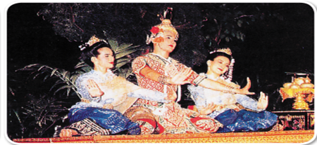 ดนตรีและเพลงร้อง ใช้วงปี่พาทย์เครื่องคู่และเพิ่มเครื่องภาษาเข้าไปด้วย เรื่องที่แสดง มีการแสดงเรื่องที่เป็นพงศาวดารของชาติต่างๆ เช่น พระลอ ราชาธิราช