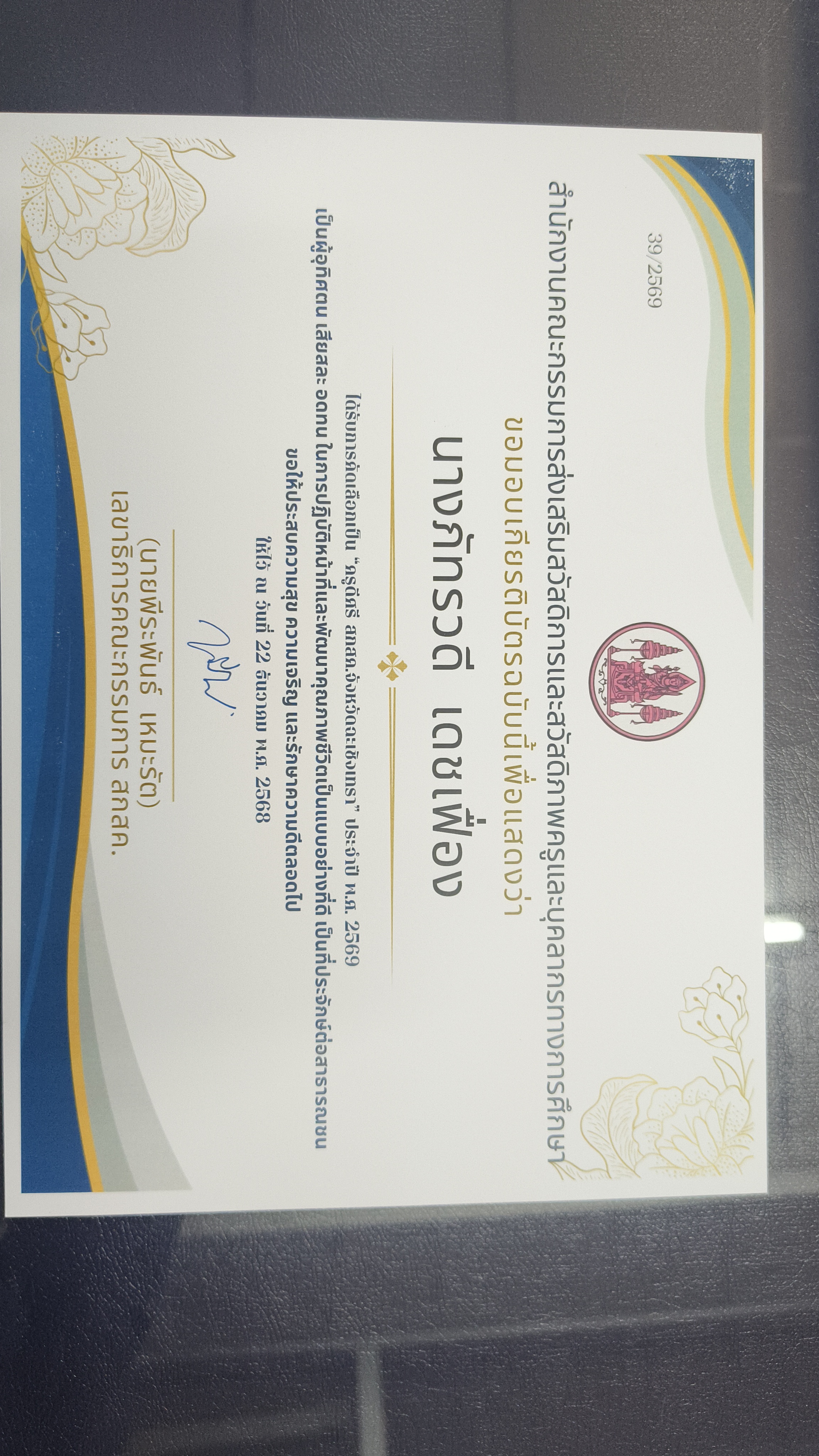 | 1 | นางชิดชญา ฆังคะรัตน์ | บุคลากรทางการศึกษา 38 ค (2) | สำนักงานเขตพื้นที่การศึกษาประถมศึกษาฉะเชิงเทรา เขต 2 | รางวัลพระพฤหัสบดี ประจำปี 2568 | อื่นๆ | จังหวัด | 2026-07-16 | สำนักงานคณะกรรมการส่งเสริมสวัสดิการเเละสวัสดิภาพครูเเละบุคลากรทางการศึกษา (สกสค.) | เปิดไฟล์ |