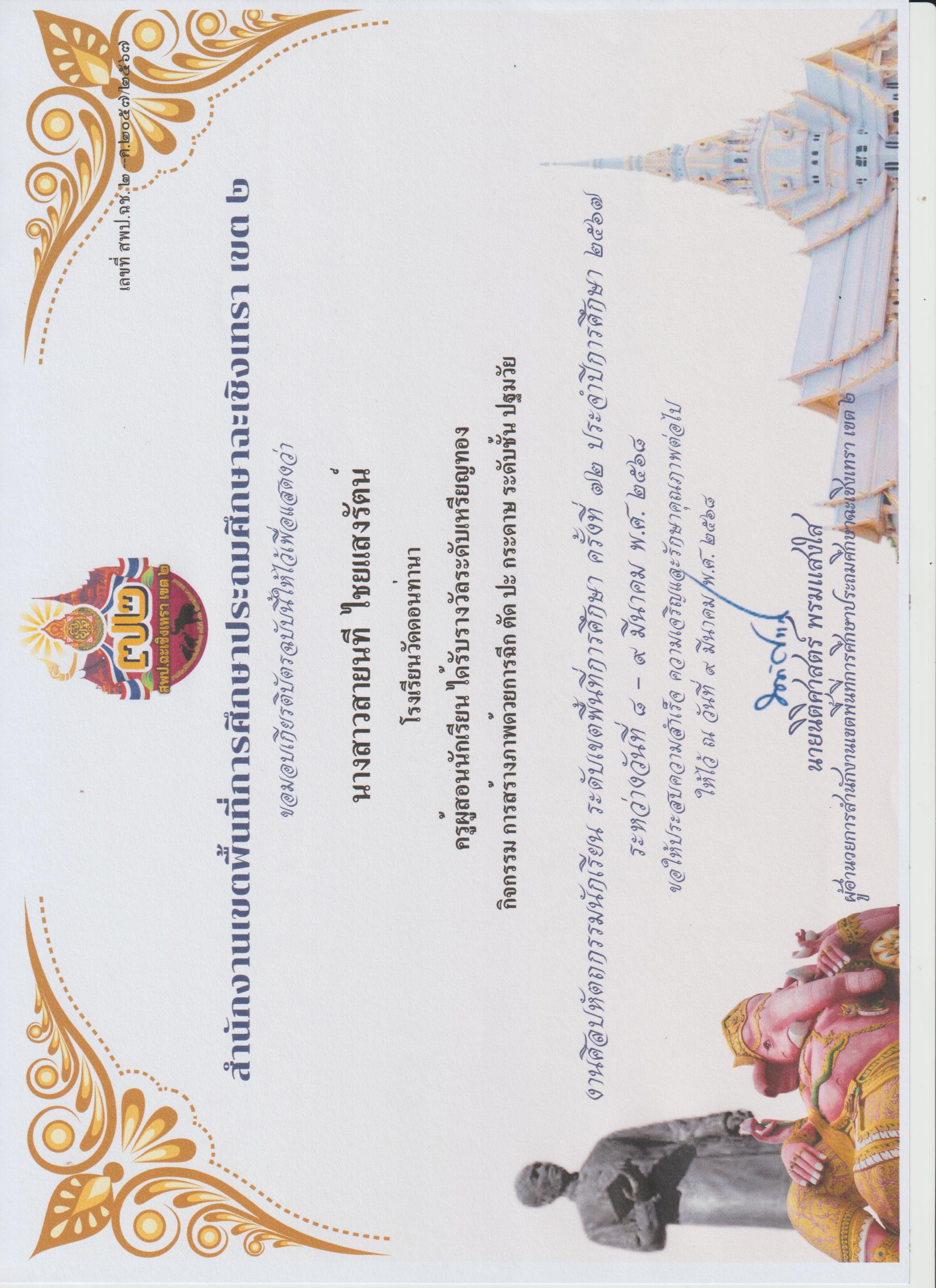 | 13 | นางสาวกฤตชญา วงศรีรักษ์ | ครู | วัดดงยาง | ครูผู้สอนนักเรียนได้รับรางวัลระดับเหรียญเงิน กิจกรรมการแข่งขันการสร้าง Webpage ประเภท Web Editor ระดับชั้น ป.4-ป.6 | อื่นๆ | ชาติ | 2023-01-25 | สำนักงานคณะกรรมการการศึกษาขั้นพื้นฐาน กระทรวงศึกษาธิการ | เปิดไฟล์ |