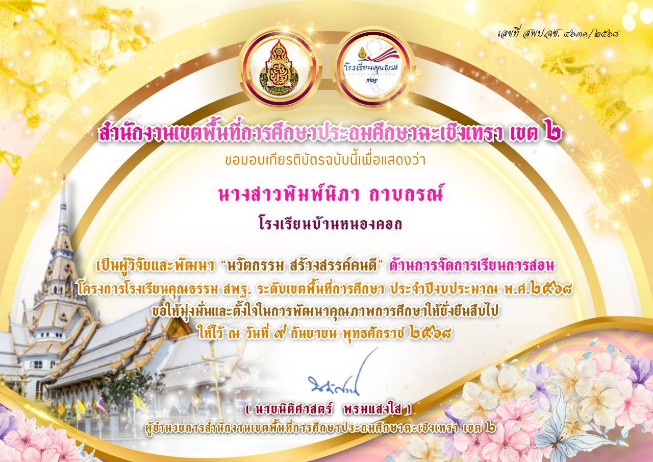 สังกัด สำนักงานเขตพื้นที่การศึกษาประถมศึกษา ฉะเชิงเทรา เขต 2