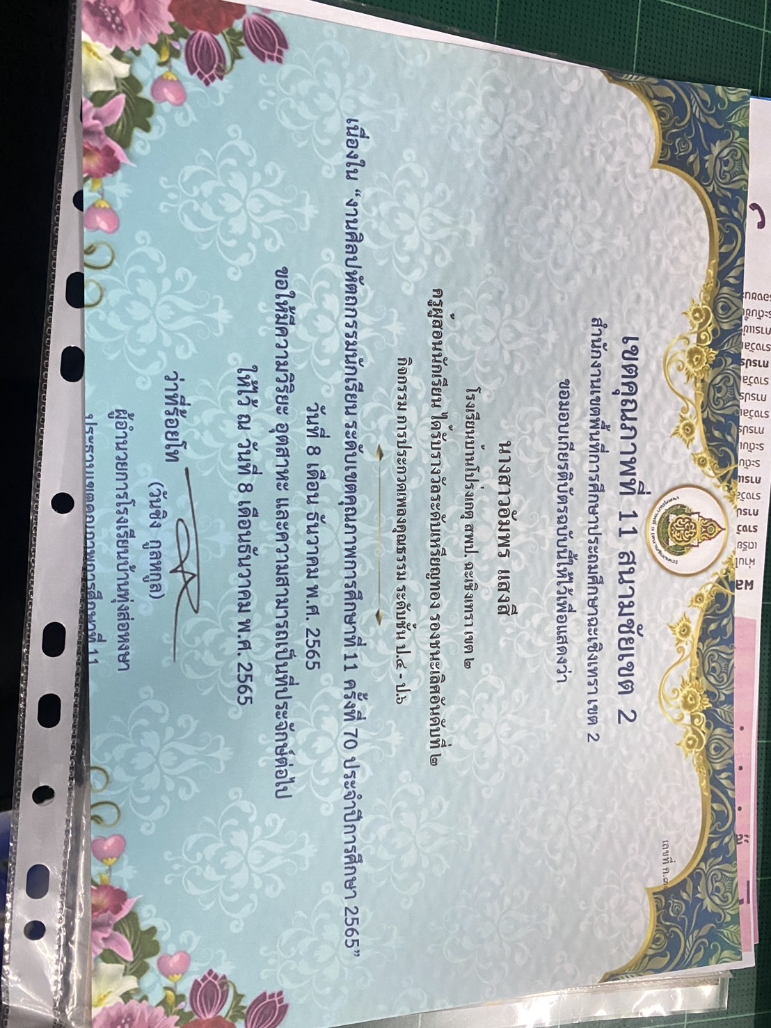 | 11 | นางสาวอัมพร แสงสี | ลูกจ้างชั่วคราว | บ้านโปร่งเกตุ | งานศิลปหัตถกรรมนักเรียน ครั้งที่70 | รองชนะเลิศอันดับ 2 | ระดับเขตคุณภาพการศึกษา | 2565-08-12 | เขตคุณภาพที่ 11 | เปิดไฟล์ |